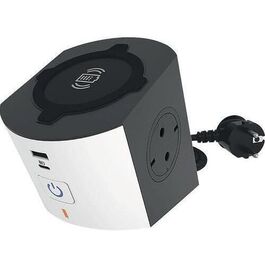 Компактный удлинитель серия Комфорт 2x2К+З нем.стд.+ беспр. ЗУ + 2USB (тип А + тип С) 2м белый/черный, NEW