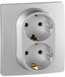 Etika - Розетка 2x2P+E нем. стд. (алюминий)