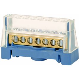 Шина латунная в корпусе на DIN рейку 1 полюс до 63A 13конт. под сеч. 16кв.мм, 2конт. под сеч. 25кв.мм, синяя